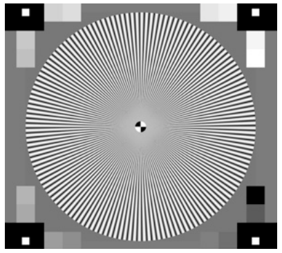 图1 用于分辨率测量的测试目标。 使用ISO12233:2014中定义的S-SFR方法,基于正弦西门子星。详细信息:标准中定义的单个正弦西门子星。