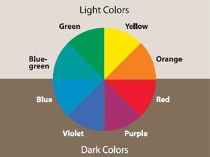 二、尽量从色环底部来选择明度较低的色彩,从色环顶部来选择明度较高的色彩,而不要从色环底部选择明度较高的色彩,从顶部选择明度低的色彩。
